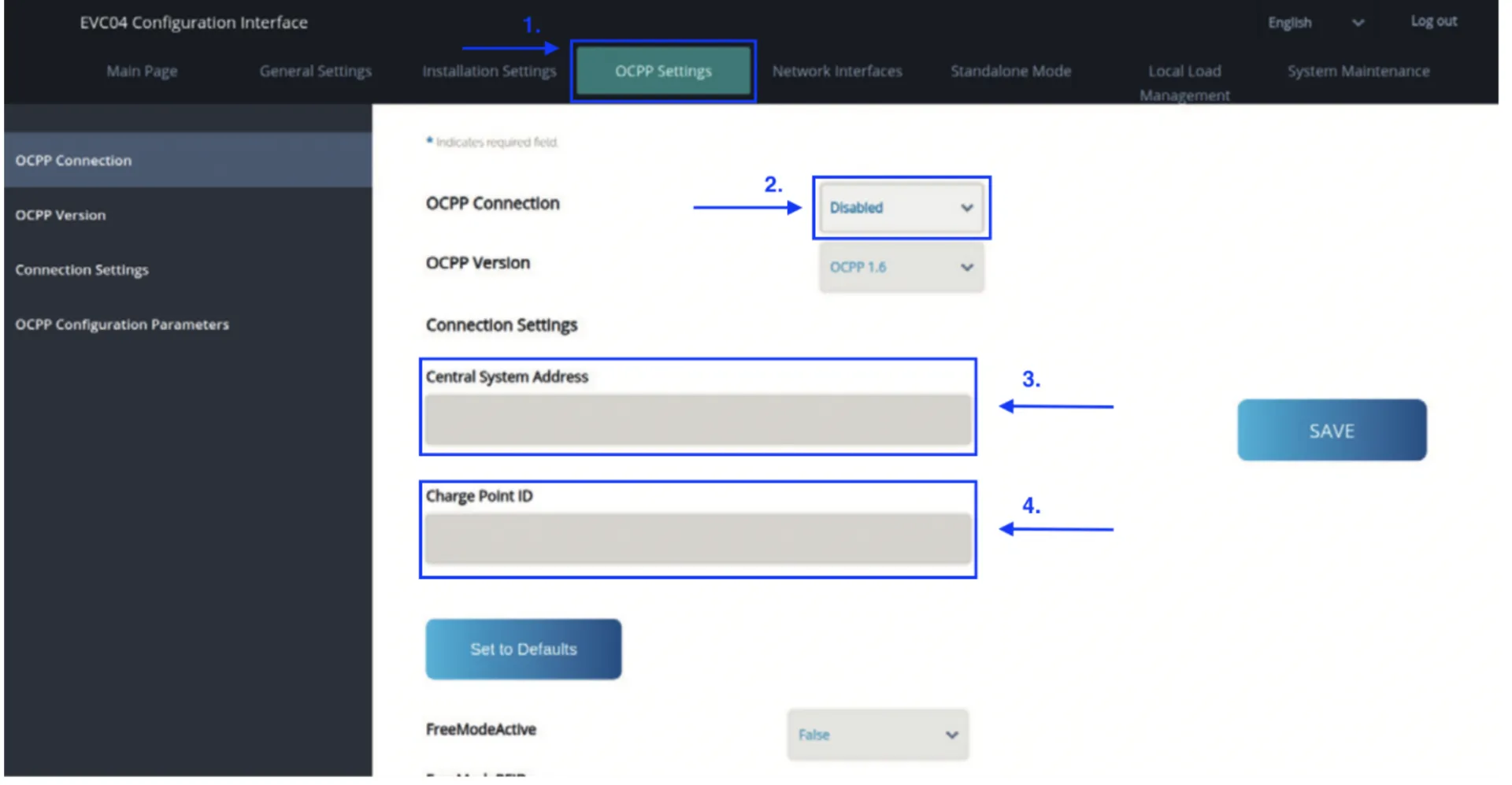 - Charge Point ID: *Here you enter your charging station identification *